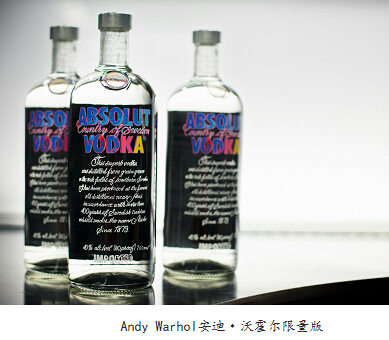 絕對伏特加“安迪·沃霍爾”限量版熱銷零售價(jià):238元/ 700ML。說到酒和藝術(shù)的跨界,就不得不提到絕對伏特加。絕對伏特加每年都會(huì)嘗試用新的技術(shù)和獨(dú)辟蹊徑地開發(fā)藝術(shù)創(chuàng)意產(chǎn)品,推出限量版,使其成為世界上最具標(biāo)志的伏特加。