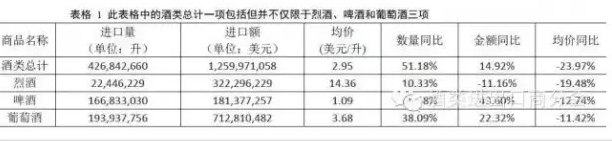 2015年1-5月酒類進口市場繼續呈現量額回升,均價下降的形態。烈酒的進口額仍處于負增長,且降幅有所擴大;