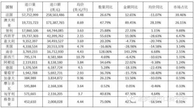 原瓶裝葡萄酒進口情況
