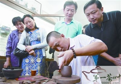 昨日,來自江蘇宜興的紫砂壺制作名家來到徐東古玩市場(chǎng)百壺軒,現(xiàn)場(chǎng)制壺,與江城壺友交流鑒賞。據(jù)悉,由名家制作的紫砂壺可保持每年20%穩(wěn)定增值,頗受江城藏友歡迎。