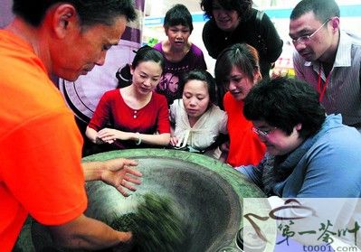 一雙手在100多攝氏度高溫的大鐵鍋里不停地炒著嫩綠的茶葉,空氣中彌漫著茶葉的清香昨日,古丈毛尖展位前炒