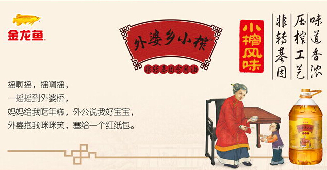 金龍魚外婆鄉小榨菜籽油:陣陣的油香,讓我憶起了兒時偎依在外婆身旁,品嘗外婆以小榨油為我秘制的各種巧手美食,那種味道至今讓我念念不忘。長大后的我四處尋覓各地美食,但難以找回記憶中的味道,那種屬于小榨油的濃醇香味,那外婆對我寓情于食的摯愛。