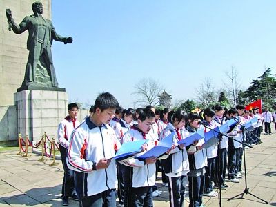 上圖:人民中學師生瞻仰雨花臺烈士陵園。