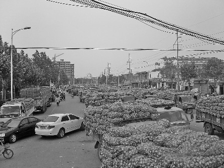 對于金鄉(xiāng)人來說,一車車的大蒜就是他們的命根子。 劉紅杰 攝