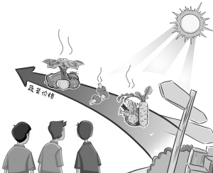 多重因素的疊加造成了7月以來杭城菜價的走高:一是本地菜受災嚴重,高溫、缺水、炙烤成為本地菜產量大幅減少的主要原因;二是高溫天氣也逼高了用工成本;三是部分外地菜受自然災害影響價格上漲,杭州客菜品種中花菜、包心菜主產區甘肅部分地區受到地震影響,毛豆主產區福建、四季豆主產區云南近期受洪澇災害影響,收購價大幅抬升;四是比價效應的影響,例如青菜、包心菜、小白菜等葉菜價格的整體走高,處于較低價位的大白菜因具明顯價格優勢吸引市民消費,進而推高了成交價格。