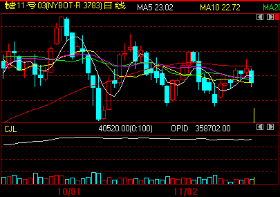 綜合外電11月19日報道,ICE原糖期貨19日收盤下跌,因美元上漲,商品市場普遍疲軟,最終ICE3月原糖期貨收盤下跌56點,報22.74美分/磅,盤中觸及低位22.56美分/磅。