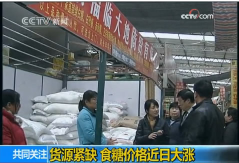 12月6日訊 在前幾天大蒜、辣椒等調味品新一輪漲價潮之后,白糖的價格,也啟動了漲價的步伐,在最近一個月時間里,糖的價格是一天一個樣。來具體了解一下。在北京玉泉路批發市場,記者在白糖批發區了解到,糖的批發價已經從今年年初的每噸2800多元漲到5000出頭,而且目前貨源還十分緊缺。一位食糖批發商說,“從八月份的三千多一直到十月份就漲到了四千五六,現在已經漲到了五千一,到廠家去上貨也很困難,廠家貨源緊缺。”“現在要是再想訂貨的話,有可能還得繼續往上漲,漲到五千六七吧。”