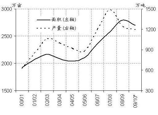 2009/2010榨季廣西甘蔗種植面積有所減少,大約減少50萬畝左右,主要是由于砍工、裝車以及農(nóng)資等成本費(fèi)用增加,影響了農(nóng)民的種植積極性。此外,鑒于各方利益,制糖企業(yè)和蔗農(nóng)報(bào)上來的種植面積數(shù)據(jù)均有可能偏大,實(shí)際減少面積可能超過50萬畝。預(yù)計(jì)下個(gè)榨季甘蔗種植面積會略有增加,畢竟糖價(jià)高企,蔗農(nóng)有可能通過價(jià)格聯(lián)動獲得更多收益,同其它作物相比種植甘蔗也較為劃算,但增幅也不會太大,主要是考慮到當(dāng)前農(nóng)資價(jià)格較高,同時(shí)勞動力并不充足,投入成本相應(yīng)較高,這些因素對甘蔗擴(kuò)種都會產(chǎn)生一定限制。