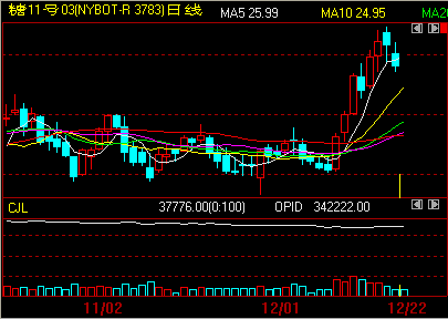 綜合外電12月21日報道,ICE原糖期貨周一收盤下跌,市場受到技術賣盤的推動,從上周的28年高位回落。3月原糖期貨收盤下跌72點,報25.62美分/磅,5月合約收盤下跌42點,報24.20美分磅。