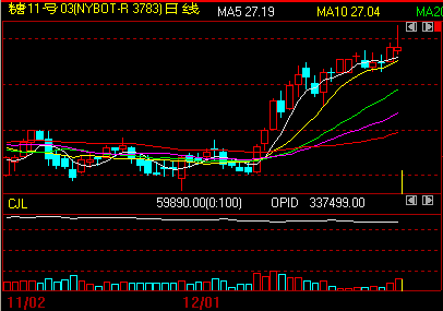 綜合外電1月5日報道,ICE原糖期貨周二收盤小幅上漲,因交易商進行獲利了結,此外盤中一度攀升至29年高點,隨后回吐漲幅,最終ICE3月原糖期貨收盤上漲2點,報27.64美分/磅,盤中觸及28.9美分的29年高點。
