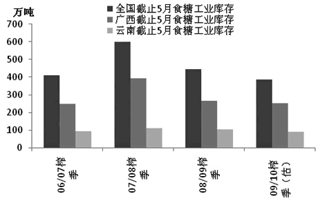 本周中糖協發布了2009/2010榨季截止到5月的食糖產銷數據,整體來看5月食糖銷量低于預期。但同時較低的工業庫存使得糖廠后期銷售壓力不大,主產區現貨基差不斷走強反映出廠商的惜售心理。
