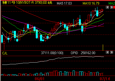 綜合外電7月13日報道,ICE原糖期貨周二(13日)收盤上漲,全球食糖供給吃緊以及商品期貨市場、股市上漲的推動下收高,ICE10月原糖期貨收盤上漲0.07美分,報收于17.17美分/磅.