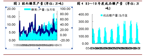 2010/11制糖期,估計云南會增20萬噸糖(產糖預計197萬噸),廣東增20萬噸(產106萬噸),海南減5萬噸(產27萬噸),甜菜糖增40萬噸(產100萬噸)。變數最大的是廣西,廣西產糖量是全國產糖量的決定因素。