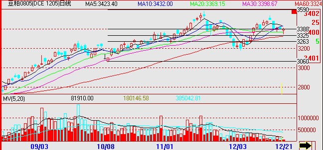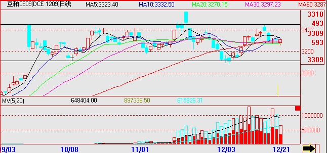 數據顯示:今年11月全國居民消費價格指數(CPI)同比上漲6.9%,創今年月度新高。1至11月份累計,居民消費價格總水平同比上漲4.6%。為控制國內資金流動過剩的局面,降低通貨膨脹,央行年內第六次加息應運而來,市場預計將對商品價格構成一定的壓力,導致早盤大連豆粕期價低開,但低位強勁買盤令連豆粕收回跌幅,隔夜美豆強勢也給盤面提供一定支撐。技術上,期價在均線附近震蕩整理,缺乏方向指引。建議投資者,持有適量多單。