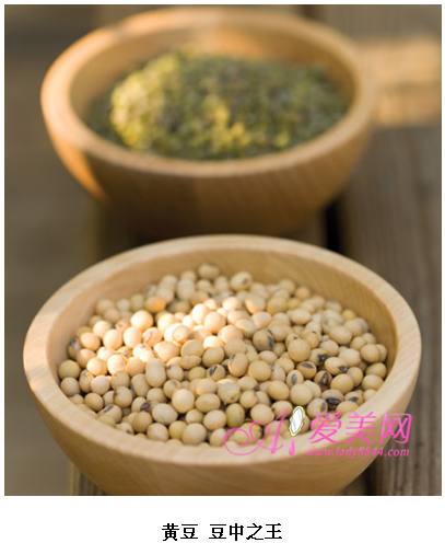 黃豆中的大豆異黃酮是一種結構與雌激素相似,而此具雌激素活性的植物性雌激素,不僅可以減輕女性的更年期癥候群癥狀,還能延緩老化、保持皮膚彈性。不但如此,黃豆中的可溶性纖維還能幫助腸胃蠕動,因有多種營養成分,因此被譽為“豆中之王”。
