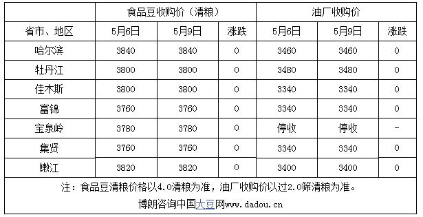 首頁市場行情豆類 豆類 5月9日東北部分地區大豆價格行情 大連商品交易所網站 2016-05-09 16:51 豆類 5月9日北方地區大豆車板價略微上浮20-40元/噸,基層收購價格并無明顯調整,因為各地收購不上量,價格上調 5月9日北方地區大豆車板價略微上浮20-40元/噸,基層收購價格并無明顯調整,因為各地收購不上量,價格上調缺乏動力,短期優質高蛋白大豆價格有上行空間。 沿淮一帶價格上漲較為明顯,淮北一帶車板價普遍上行至4440-4460元/噸,周比上調60元/噸。 各個產地供應緊張局面較為凸顯,預期將繼續提振價格上行,但仍然要關注港口地區進口大豆情況以及臨儲大豆拍賣動態。 上一篇5月6日東北部分地區大豆價格行情5月6日北方大豆價格保持穩定,市場上二類大豆居多,報價較為混亂,主流收購價格大概3700-3760元/噸,車板 上一篇5月10日東北部分地區大豆凈貨收購價格穩定5月10日北方地區凈貨收購價格保持穩定,局部地區車板價上調40-60元/噸,優質39%蛋白裝車價格有個別地區達 相關文章 中儲糧糧庫收輪換大豆價格上調 東北豆行情“普漲” 11月3日東北部分地區大豆價格行情 10月31日東北部分地區大豆價格行情 10月27日東北部分地區大豆價格行情 10月26日東北部分地區大豆價格行情 25日東北部分地區大豆收購價格行 10月24日東北部分地區大豆價格行情 10月21日東北部分地區大豆收購價格行 10月20日東北部分地區大豆收購價格行情 10月19日東北部分地區大豆收購價格行情