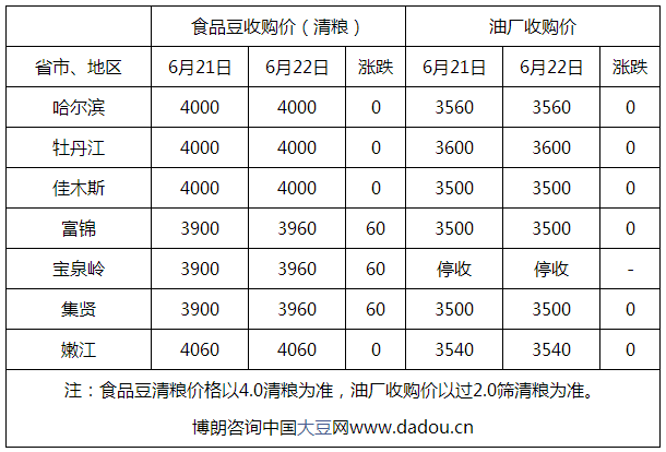 6月22日黑龍東部區(qū)域市場價格有所上調(diào),上調(diào)幅度60元/噸附近。市場依舊購銷清淡。國內(nèi)產(chǎn)銷區(qū)市場整體成交呈現(xiàn)清淡態(tài)勢,產(chǎn)區(qū)市場豆價在供應(yīng)緊張的支撐下表現(xiàn)堅挺,因基層收購困難且南方客商要貨積極性不高,貿(mào)易商多采取以本地或周邊地區(qū)輪換糧消耗為主,因此主流收購價格變化仍然不大。