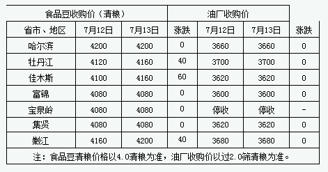 7月13日東北大豆價格仍然延續堅挺上行走勢,黑龍江北部、中部以及東部部分產區車板價升至4400元/噸,內蒙