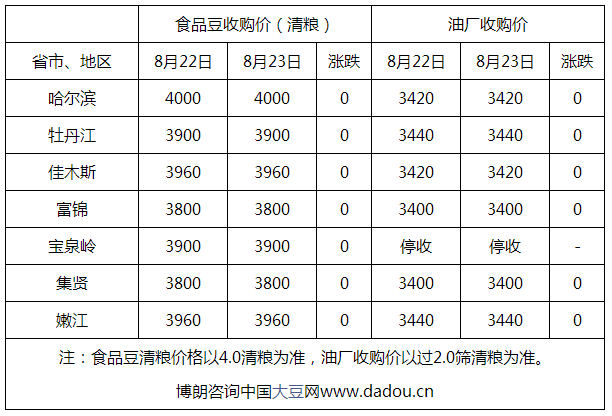 今日黑龍江大豆價格整體保持穩定,2013年舊作大豆目前主流銷售價格3760-3800元/噸,個別優質售價3900元/噸