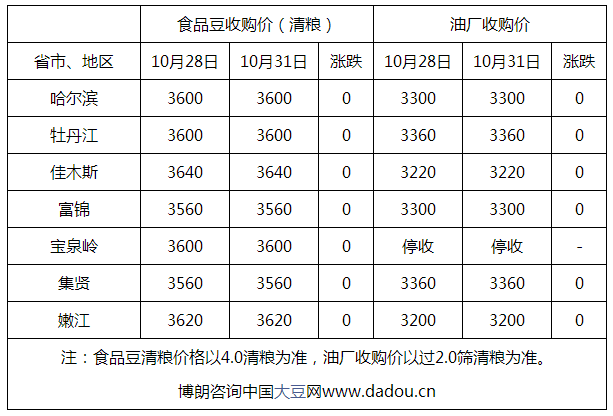 首頁市場行情豆類 豆類 10月31日東北部分地區大豆價格行情 大連商品交易所網站 2016-11-01 16:43 豆類 10月31日東北產地大豆價格繼續以穩為主,因銷區加工廠需求低迷,加之北方鐵路請車困難,南北方市場購銷寡 10月31日東北產地大豆價格繼續以穩為主,因銷區加工廠需求低迷,加之北方鐵路請車困難,南北方市場購銷寡淡局面仍然沒有緩解。 市場凈糧收購主流報價3500-3600元/噸,塔豆外銷價格3700-3800元/噸區間。 糧庫啟動收購加之農民極為惜售,市場多空因素共同發揮作用,預計短期價格繼續盤整。吉林敦化糧庫昨日啟動輪換收購工作,國標三等大豆收購價格3640元/噸,略高于黑龍江糧庫收購價。 上一篇10月27日東北部分地區大豆價格行情10月27日黑龍江東部基層收購價格近期略有上漲,建三江、寶清地區優質毛糧收購價格由3440元/噸上調至3500元 上一篇11月3日東北部分地區大豆價格行情11月3日東北產地大豆收購與外銷價格沒有明顯調整,凈糧收購價格集中在3500-3600元/噸,車板價3700-3800元/ 相關文章 中儲糧糧庫收輪換大豆價格上調 東北豆行情“普漲” 11月3日東北部分地區大豆價格行情 10月27日東北部分地區大豆價格行情 10月26日東北部分地區大豆價格行情 25日東北部分地區大豆收購價格行 10月24日東北部分地區大豆價格行情 10月21日東北部分地區大豆收購價格行 10月20日東北部分地區大豆收購價格行情 10月19日東北部分地區大豆收購價格行情 10月17日東北地區大豆價格保持穩