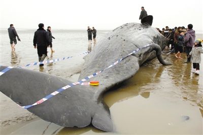 江蘇黃海海域現4頭死亡鯨魚 2012-03-19 【圖說】 昨日,江蘇省鹽城市濱海縣,分布在海灘沿線5公里距離內的