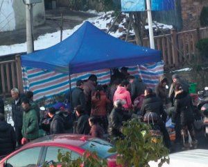 2月中旬的一個早上7時許,湖州市東林鎮的農貿市場,一座小橋邊有一個藍色棚子。不少人正圍著這個棚子。他們手里都提著一只桶,桶里裝的都是甲魚。他們逐個把甲魚倒入地上的大盆里,然后有專人,按照個頭大小進行分揀裝袋。不到一個小時,這個棚子前已經堆滿了幾十袋病死甲魚。