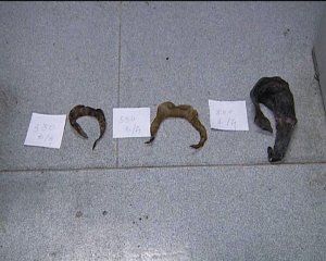 男子稱這東西叫裙邊,是從死甲魚身上剪下來的。“活甲魚誰給你剪啊,一只活甲魚剪了裙邊就沒用了,肯定是死甲魚身上剪的。省內一些市場都有人到我這進貨。”他告訴記者,對方拿去曬曬之后,包裝一下就可以賣幾百元一斤的。
