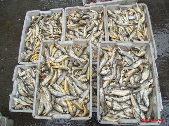 1、從冰鮮水產(chǎn)品交易來看:清明前后,由于漲網(wǎng)船捕撈量大幅減少,在冰鮮市場上交易冰鮮貨源也就相對較少。上個(gè)月筆者能見到較多新鮮的力魚,進(jìn)入四月以后,品種結(jié)構(gòu)發(fā)生了較大的變化。前來市場投售的水產(chǎn)品主要以熱氣小黃魚居多,且規(guī)格大多在0.6-1兩左右。中旬以后,漁船到港,大量的帶魚進(jìn)入市場交易,其價(jià)格為:4兩以上規(guī)格的東海帶魚(正宗的)賣到14元左右/500克,8兩以上規(guī)格的東海帶魚(正宗的)賣到23元左右/500克。四月份,由于天氣轉(zhuǎn)暖,海鮮魚保鮮難度加大,小黃魚等規(guī)格較小等原因,加上目前時(shí)段還不是大量進(jìn)貨進(jìn)入儲存的最佳時(shí)機(jī),貨源集中到貨時(shí),規(guī)格1兩左右的熱氣小黃魚只賣到3.5元-6.5元/500克左右。從這一點(diǎn)可以看出,連這么小的魚多捕撈上來在賣了,可見水產(chǎn)資源減少已經(jīng)到了何等嚴(yán)重地步。4月8日后,由于禽流感的因素,農(nóng)貿(mào)市場雞鴨等停止交易,前來市場選購冰鮮水產(chǎn)品的消費(fèi)者和前來批貨的小販較以往有明顯增多,給市場帶來了較旺的人氣。