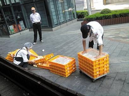 昨日,記者在百度上搜索“85度C面包掉地上再賣”,出現了23000條搜索結果,看來該帖已被不少網站轉載。帖子中共有5張照片,照片中有兩名工作人員。照片顯示,從裝有面包圖案的塑料筐被打翻,到工作人員將打翻的面包團撿起,再放入塑料筐,整個過程較為清晰,但除此之外無其他照片。