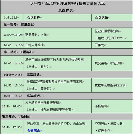 您好!很榮幸邀請貴司參加“大宗農產品風險管理及價格行情研討主題論壇”。