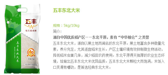 五豐東北大米,原糧選自黑龍江,純凈的自然條件,得天獨厚的農業生態環境,孕育了五豐東北大米卓爾不群的優異品質。五豐東北大米5kg售價27.90。