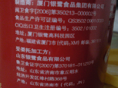 5月5日上午,記者根據(jù)張女士反映的情況,致電山東銀鷺食品有限公司,電話卻始終處于無法接通的狀態(tài)。記者又通過114查詢山東銀鷺食品有限公司,結(jié)果居然沒有登記,最后114提供一個可以聯(lián)系到該公司的電話(0531-80989728),可記者撥打過去是一傳真號碼。隨后,記者想查看產(chǎn)品包裝上是否有廠家的聯(lián)系方式,但是遺憾的是產(chǎn)品上只有受委托加工方:山東銀鷺食品有限公司,地址是:山東省濟(jì)南市章丘明水經(jīng)濟(jì)開發(fā)區(qū)埠村路368號。