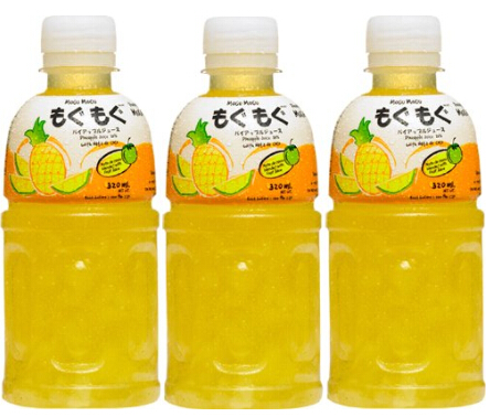 磨谷磨谷椰肉菠蘿汁飲料售價7.5/瓶*330ml,菠蘿有助于消腫,幫助消化,舒緩喉痛。磨谷磨谷(mogo mogo)椰肉飲料是泰國著名品牌——是泰國薩帕南食品有限公司榮譽出品的果肉果汁類產品系列之一。采用上等優質無雜質的椰肉原料,加入果汁配制成不同口味的果肉飲料,口感細膩、椰肉富有彈性爽口的飲料。是泰國目前最送喜愛的夏季飲品。