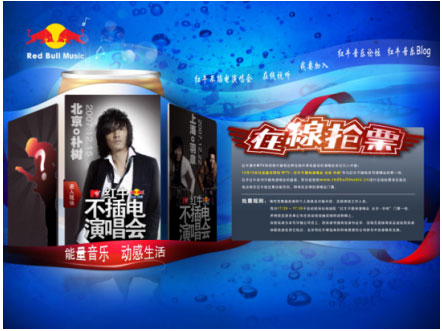 不論是與什么單位合作舉辦演唱會,紅牛飲料當然不會將自己變身為音樂制作公司或者是音樂電視臺,它要做的是通過音樂這一載體,巧妙地尋求與消費者溝通的渠道,以此來讓自己的品牌形象更具情感魅力。來自多方的信息表明,MTV全球音樂電視臺中國頻道和紅牛飲料這次合作具有深意。對前者,這是MTV全球音樂電視臺倡導“回歸音樂”的又一大舉措。對于后者,“MTV-紅牛不插電中國系列演唱會”將為紅牛揭開音樂營銷的新篇章。