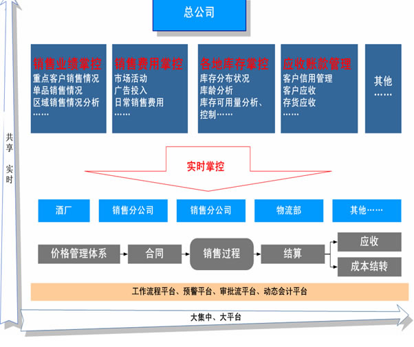 白酒行業(yè)目前是典型的買方市場,增加市場營銷力度,加強終端銷售成為白酒行業(yè)的主要出路。節(jié)假日、年末是酒類銷售高峰,企業(yè)通常先發(fā)貨后結(jié)算,以便占領(lǐng)更多的市場份額,此時更需要及時了解區(qū)域市場及其備貨情況;正由于此,網(wǎng)絡(luò)化管理、獲得實時信息對酒類企業(yè)顯得尤為重要。