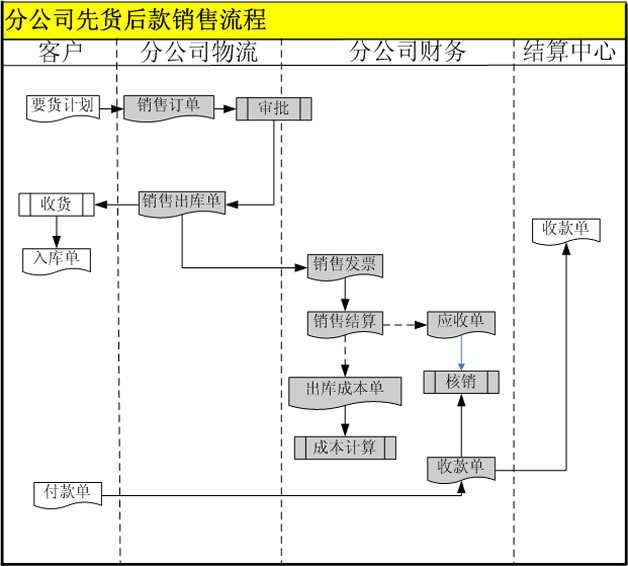 3.2.5、分公司銷售業(yè)務(wù)的實現(xiàn):以先貨后款模式為例說明