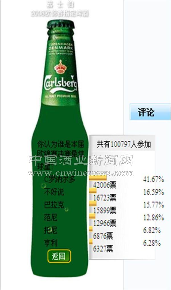 嘉士伯在本次營銷中充分利用網(wǎng)絡(luò)的交互性,在歐洲杯專題首屏通欄及嘉士伯調(diào)研廣告中,加入了網(wǎng)友競猜活動。通過設(shè)置一系列與比賽相關(guān)的問題,讓網(wǎng)民進行競猜及展望。新浪網(wǎng)站為嘉士伯活動制作的flash調(diào)查器統(tǒng)計,共有數(shù)十萬人次參加調(diào)查、點擊率日均過萬。