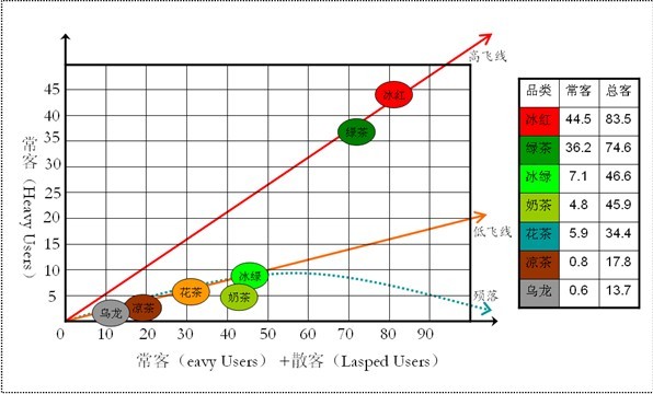 但事實總會跟理想有差距,當我們再研究中國茶飲時卻發現一個完全相反的悖論,就是有些茶飲的市場滲透度越高,這個品牌反而死得越快,為什么?