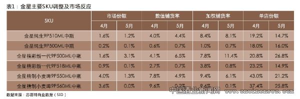 實際上,金星啤酒沒有做調整的重點SKU的市場銷售保持著穩定的狀態,低檔的金星小麥啤酒在買贈促銷的拉動下還略有上升。