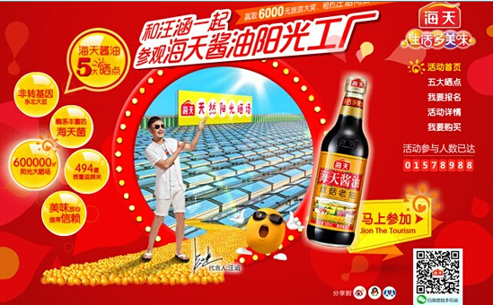 電商銷售方是海天營銷的一大亮點。在此大數據大環境下,精準整合營銷或成新營銷法寶關鍵,包括調味品領域在內的行業將變得細分化和多元化。新媒體對接新商業模式,近日,海天股份舉辦了“和汪涵一起參觀海天醬油陽光工廠”活動,開辟“電視廣告+PCminisite網站+無線移動端”跨屏三網聯動營銷新模式,精彩看點根本停不下來。