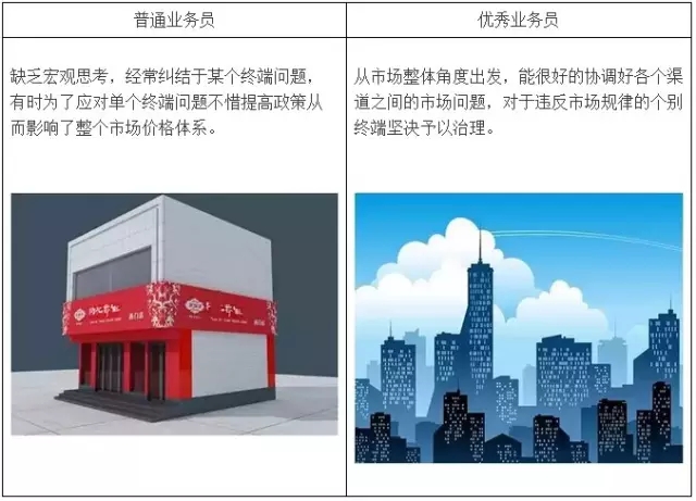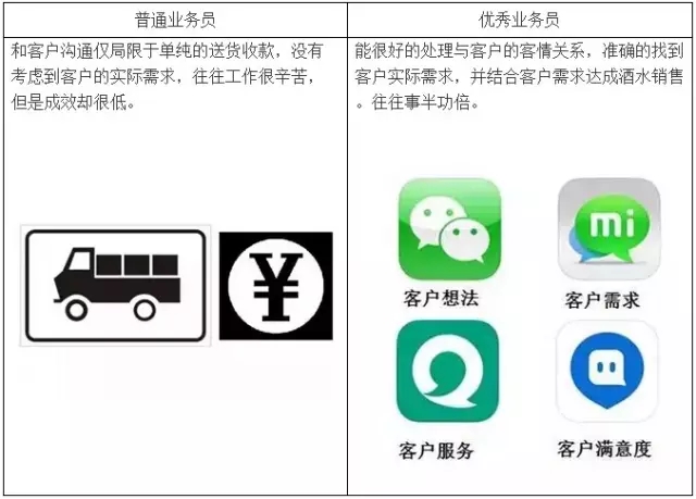 首頁市場營銷營銷分析 營銷分析 白酒旺季,為什么你的酒還是難賣? 杜康秘藏 2016-12-26 13:44 營銷分析 普通業務員 VS 優秀業務員 白酒進入旺季,而有很多業務員工作還是沒多大起色。俗話說:冰凍三尺非一日之寒 普通業務員 VS 優秀業務員 白酒進入旺季,而有很多業務員工作還是沒多大起色。俗話說:“冰凍三尺非一日之寒”。憑什么別人能加薪、升職,而你不能??纯茨愀鷥炐愕木扑畼I務員差距在哪? 一、關于剛入職時 二、關于對待問題 三、關于執行力 四、關于個性 五、關于下班后 六、關于工作重點 七、關于客戶溝通 八、關于視界 九、關于批評 十、關于職業規劃 上一篇春節要是想大賺,如何備貨是關鍵對于節日備貨,也許很多老板都有過郁悶的經歷: 由于計劃不周,備貨不足,在產品銷售最快的時候,盤點倉庫 上一篇“小而美”白酒盡奪眼球:定制白酒營銷新方向當今時代,隨著社會的快速發展,以及消費市場的巨大變化,人們的消費觀念有了很大改變,消費心理也日漸成熟,很多消費者不再盲目追求千篇一律的大工業化的產品,而是講究自身的消費特性,避免消費的大同。因而,個性消費日趨明顯,消費開始進入個性化需求時代,它對企業 相關文章 海底撈為什么不像肯德基那樣到處打廣告? 青年更愿意選擇負能量的“喪茶” 還是“隨時向前”的脈動 業務員:賣什么都是賣,為什么要賣酒?論業務員最重要的素質! 新年伊始 酒商謀劃的何種戰略 將決定收貨的金盆還是跳蚤 為什么銷售高手大多是優秀的人? 為什么越打折,顧客越少、越還價? 為什么有些大經銷商的生意一天比一天蕭條? 調味品是重慶小面加盟火爆的重要原因 春節臨近,海鮮禮盒受冷落 中國糖酒網與您分享酒桌上的經銷商為什么能做大做強?