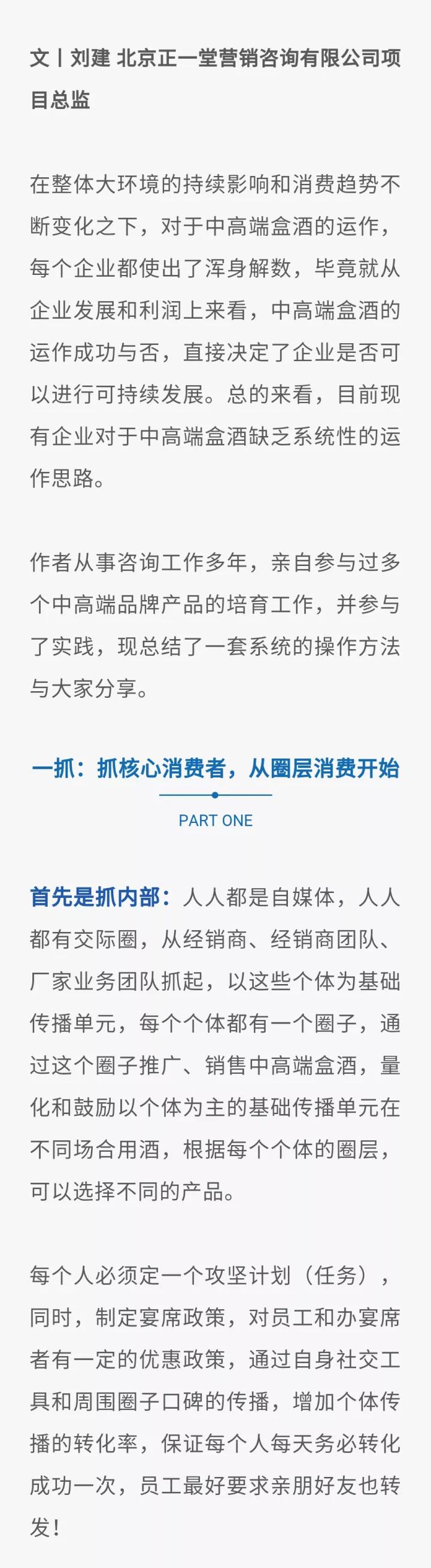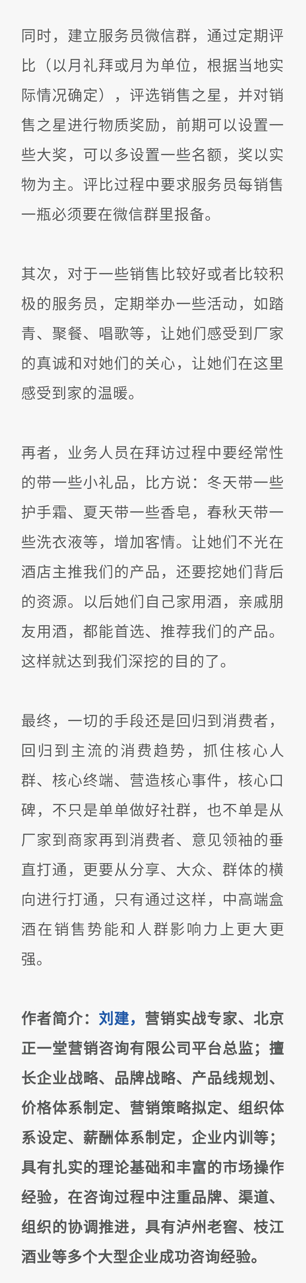 首頁市場營銷營銷分析 營銷分析 中高端盒酒營銷成功秘笈 未知 2017-11-13 10:35 營銷分析 上一篇酒企三級品牌管理術文|呂咸遜 海納機構總經理、茅臺營銷顧問團秘書長 隨著中國酒業的快速復興,各大酒企都在比學趕超式的漲價 上一篇廠商如何放大招化解營銷抗體近期,阿里巴巴開設了實體超市盒馬鮮生,并在店內進行了葡萄酒的分杯銷售。 而擁有中國商超巨頭之譽的永輝 相關文章 中國白酒新型營銷之標榜 亞馬遜成功的秘密 區域化酒企營銷戰略解析 2018年度營銷規劃的四個規劃 社群營銷體系的構建路徑 場景化營銷活靈活顯 新營銷的四個關鍵詞:場景、IP、社群、傳播 營銷總監的年薪到底該怎么定? 廠商如何放大招化解營銷抗體 成功者懂得逆性思維