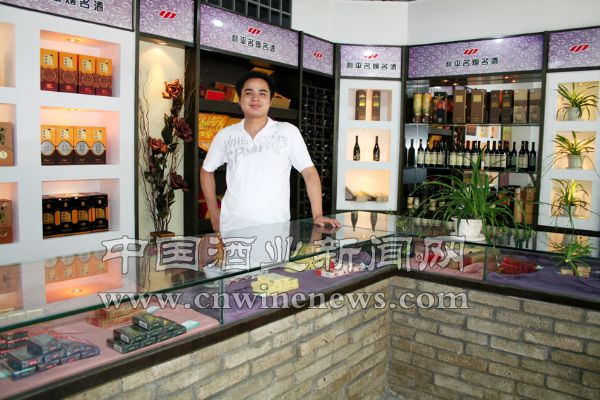 立式貨柜前是6節排列成“7”字形的柜臺。其中2節柜臺用來陳列高檔名酒。