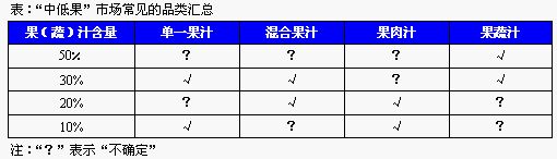 品類的劃分可以用兩個緯度來歸納,即:果汁的濃度和果汁的種類(如下表)。