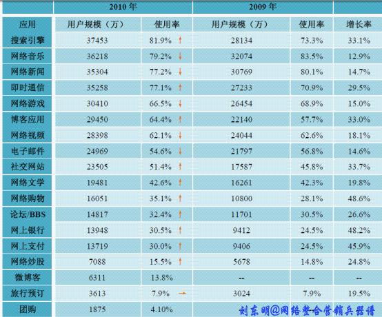 2010年搜索引擎使用率首次超過了網絡音樂,成為網民第一大應用。搜索引擎使用率達到81.9%,用戶規模3.75億