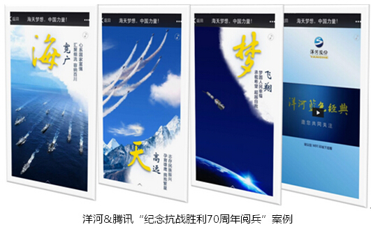 如果說“酒文化”可以達到“潤物細無聲”的營銷效果,那么在“紀念抗戰勝利70周年閱兵”中表達自己的愛國情懷更是“精明”。洋河通過與騰訊新聞“紀念抗戰勝利70周年閱兵”專題合作,借助騰訊新聞的平臺和內容優勢,將洋河與民族情結、中國力量展現給消費者,充分實現了品牌形象的提升。
