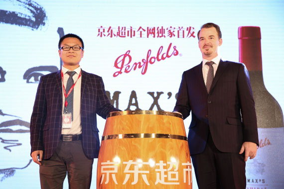 5月4日,京東紅酒戰略發布會暨第三屆京東國際紅酒節啟動儀式在京舉行。發布會上,京東商城消費品事業部酒類采銷部總經理王志強與奔富品牌大使Ewan Proctor共同揭幕奔富新品——“麥克斯經典”,同時宣布將由京東超市全網獨家首發。