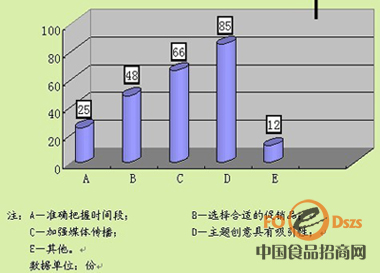 小結:從調查數據中可以看出,結合世博會主題的事件營銷活動,側重點在于是否具有一個好的主題創意。其次就是加強媒體的傳播作用。和奧運會一樣,對于酒水企業來說,世博會又是一次"千年等一回"的事件營銷機會,一些酒企很舍得投入,大把大把的掏銀子,請明星、贊助節目、租廣告位,可很多企業在創意和軟宣上卻往往把握不好,宣傳效果就會大打折扣。
