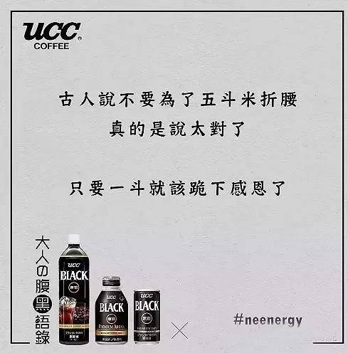 好的廣告,不僅刺激消費者的購買欲,也能喚起人們的情感共振,即使是負面的情緒也會有積極意義——生活不可能隨時風和日麗,都過得那么慘了,那趕緊來點咖啡打打氣啊!