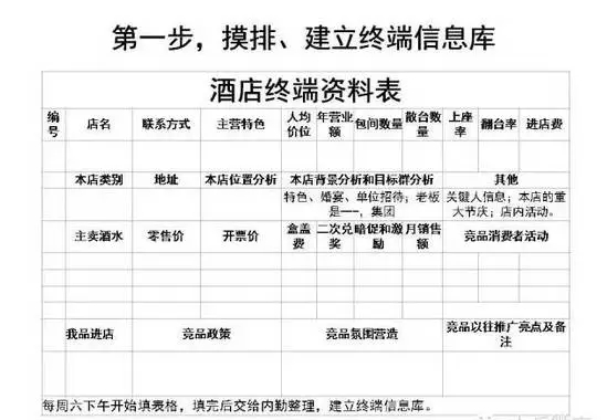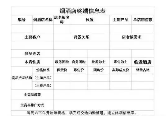 首頁市場營銷營銷資料 營銷資料 給您來點實在的:終端操作標(biāo)準(zhǔn)化19張PPT,含眾多實用表格 杜康秘藏 2016-07-19 11:28 營銷資料 各渠道操作手冊 煙酒店渠道操作手冊 團(tuán)購渠道操作手冊 酒店渠道操作手冊 各渠道操作手冊 ·煙酒店渠道操作手冊 ·團(tuán)購渠道操作手冊 ·酒店渠道操作手冊 上一篇投資經(jīng)營品牌茶葉連鎖店發(fā)展前景廣闊投資經(jīng)營品牌茶葉連鎖店有著廣闊的發(fā)展前景。如今市場上的品牌茶葉行同很多,這也讓該行業(yè)的競爭日漸激烈 上一篇方向不對,努力白費!如何成為當(dāng)?shù)刭u酒王者呢?6大核心工程!最難忘的兩個字:在嗎 最古典的三個字:有貨嗎 最感人的四個字:再發(fā)點貨 最欣慰的五個字:我就相信你, 相關(guān)文章 正反2個案例,教你鋪貨的超實用話術(shù) 九大實用營銷方案 ROI理論是一種實用的廣告創(chuàng)意指南 網(wǎng)上發(fā)布廣告的渠道和形式眾多 廣告策劃書有兩種形式,一種是表格式的 雙遼酒類市場名優(yōu)白酒多 終端實用銷售技巧11例